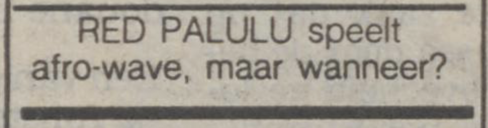 “We mengden Afrikaanse invloeden met westerse popmuziek. In de band hadden we ook een fusie van nationaliteiten. Patrick (bassist) en Doc (drummer) kwamen uit Suriname, vandaar ook onze naam Red Palulu: een prachtige bloem uit Suriname. We gebruikten zowel Engels als Frans, Surinaams en zelfs wat flarden Afrikaans. De saxofonist was in Tanzania geboren. We repeteerden destijds op het Leidseplein, in de oude gevangenis die er nu niet meer is. Je kon toen nog precies de balustrades zien waar de bewakers toezicht hielden op de gevangenen. Dat gebouw zat tussen de Balie en Paradiso in. We oefenden iedere vrijdag, de hele dag lang, en gebruikten graag bijzondere ritmes zoals 6/8 of 5/4.”